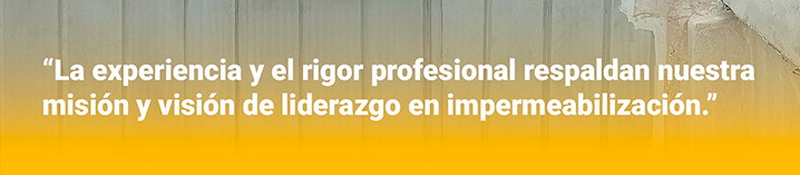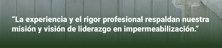Brindar servicios de especializados de reparación e impermeabilización, ejecutados con profesionalismo, responsabilidad y rigor técnico. Nuestro compromiso es ofrecer resultados seguros y eficientes, mediante el uso de materiales de vanguardia procesos certificados, asegurando la plena satisfaccion de nuestro clientes y contribuyendo al desarrolo de espacios habitables más resistentes y sostenibles.